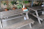 屋外のテラスで食べるのですが、なぜか蚊もいなく落ち着いて食べられます。